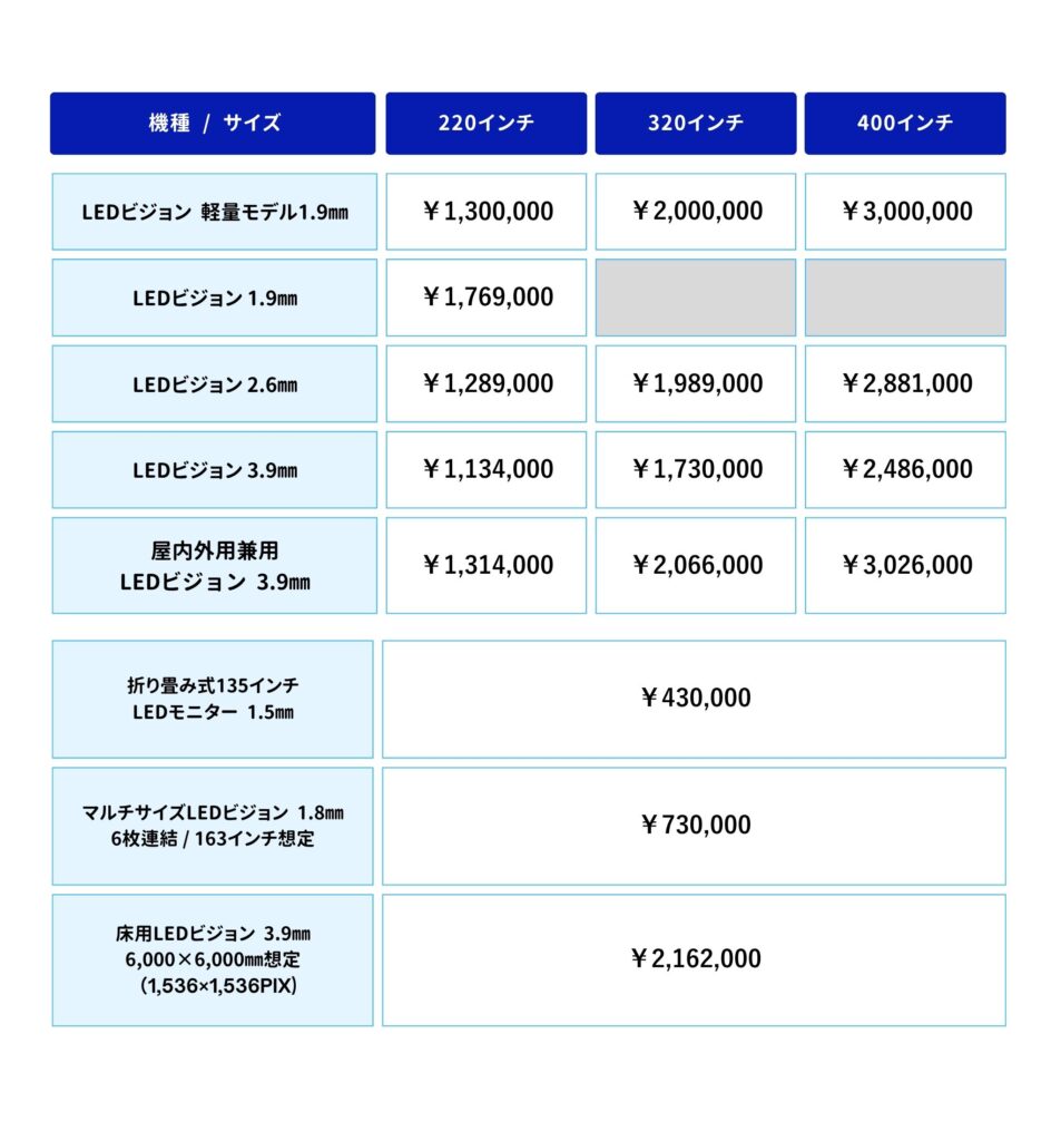 LEDビジョンのサイズイメージを